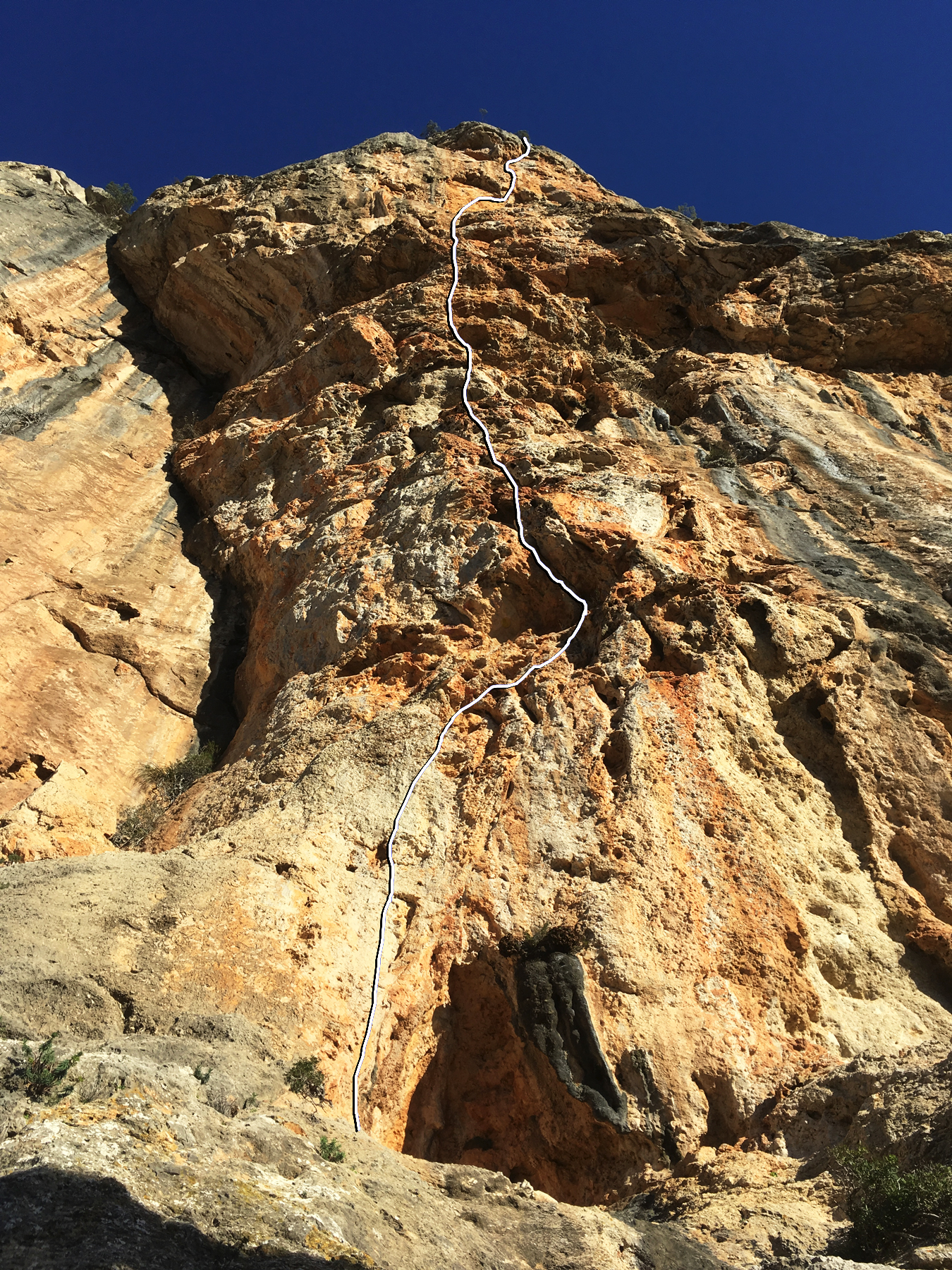 • Material para repetición: 1 juego completo de friends, varias vagas largas para puentes de roca, 10-12 cintas expres, casco.